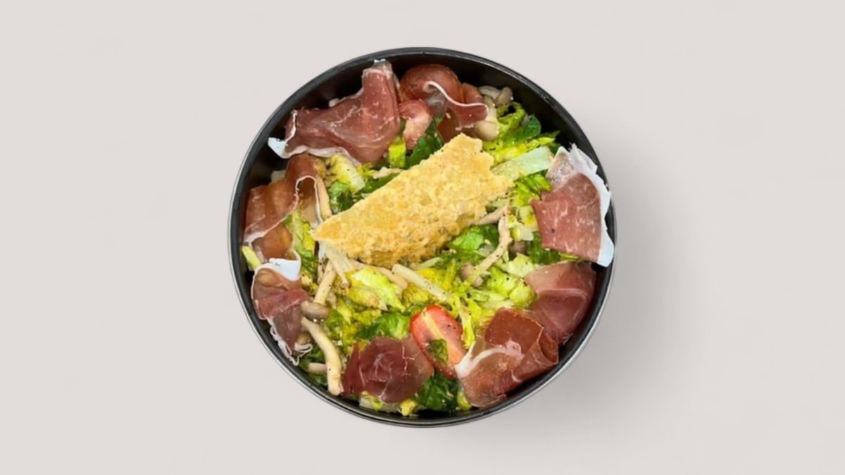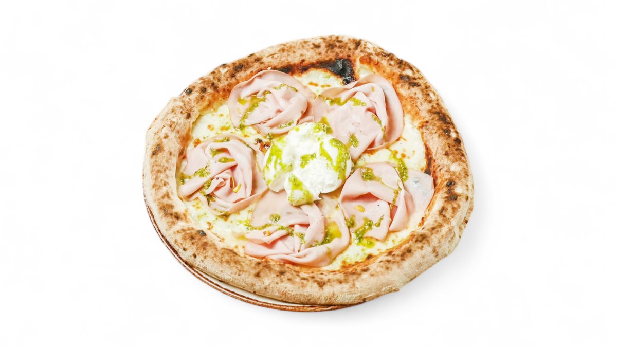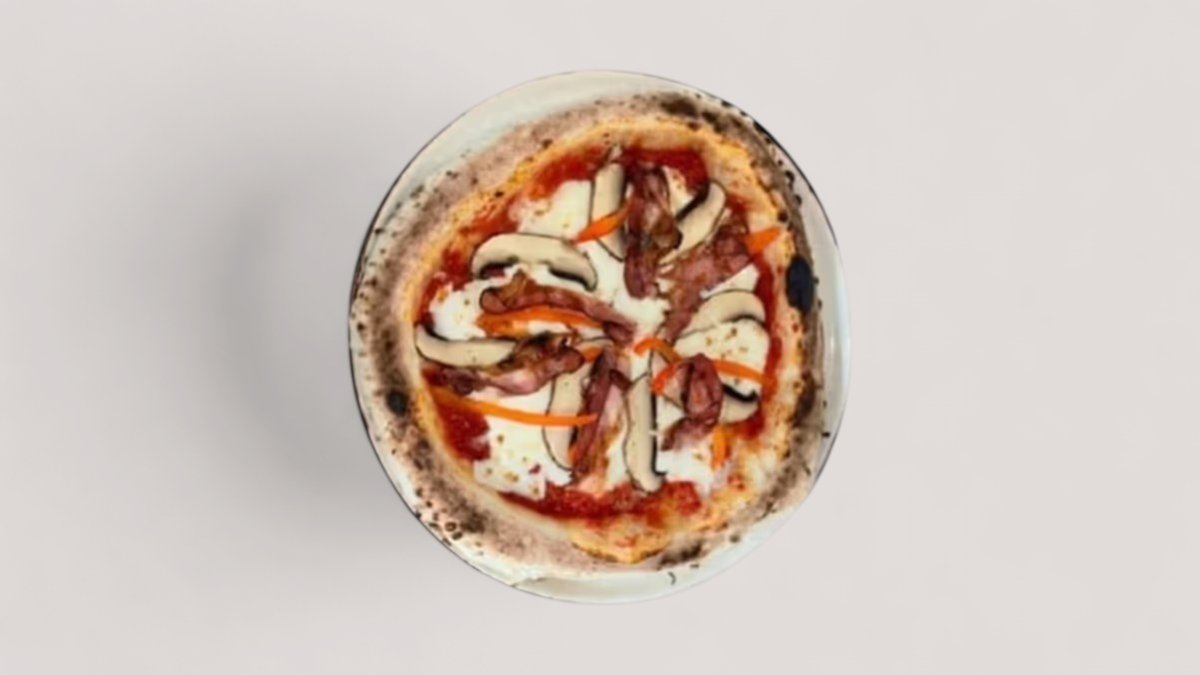 Ντομάτα San Marzano, prosciutto Galloni, μοτσαρέλα, ρόκα, παρμεζάνα.