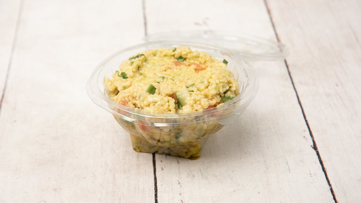 Σαλάτα με πλιγούρι, ντομάτα, αγγούρι, αρωματικά και σάλτσα δυόσμου