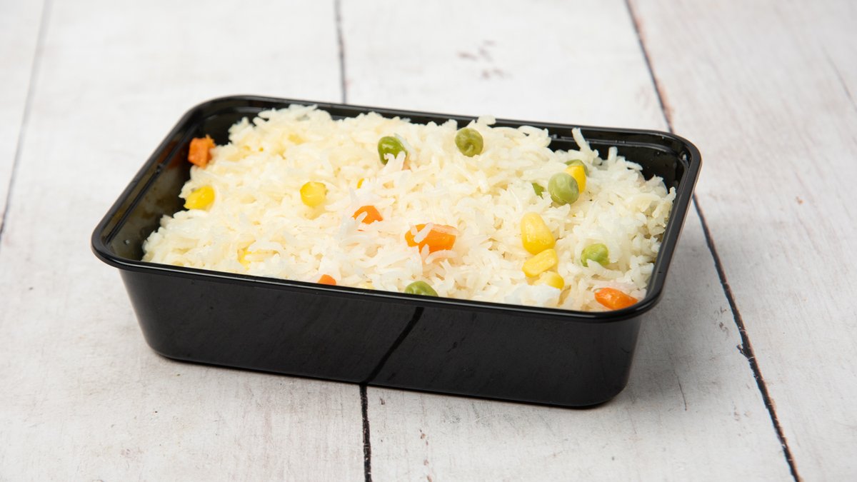 Συνοδεύεται από λαχανικά, σόγια και ρύζι βουτύρου basmati