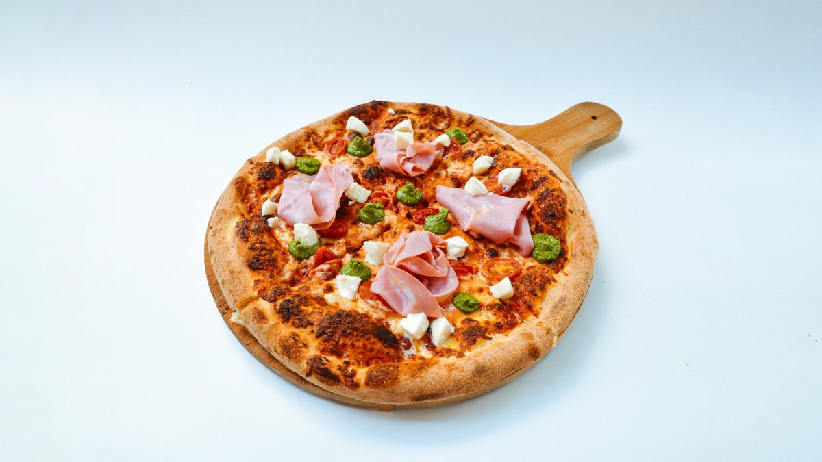 Με σάλτσα san marzano, mozzarella, ντοματίνι, pesto βασιλικού, μορταδέλλα με φυστίκι αιγίνης και mozzarella fior di latte