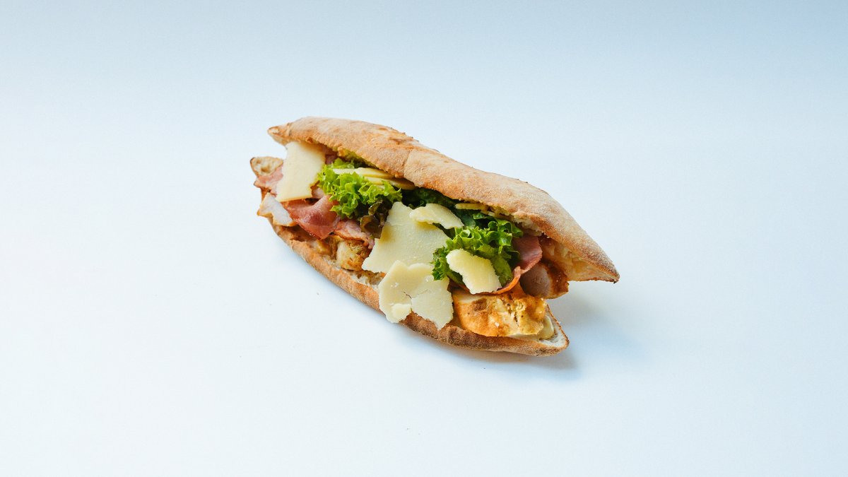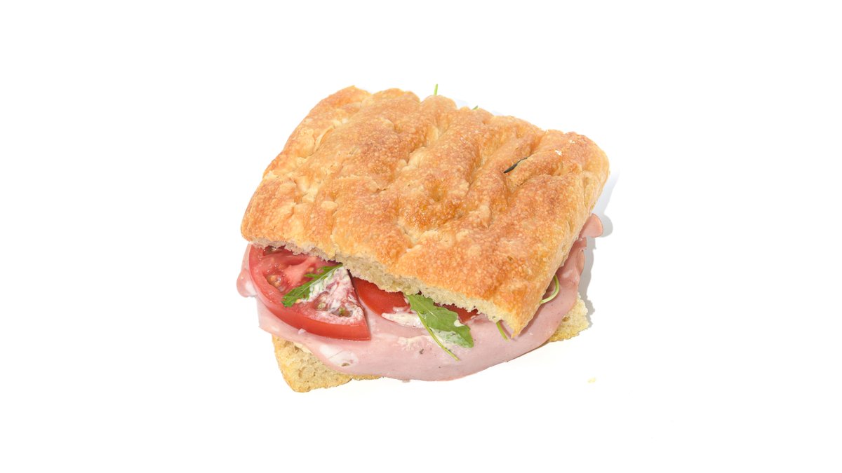 Με παρμεζάνα, μορταδέλλα με φυστίκι αιγίνης, ρόκα, ντομάτα και mayo τρούφας