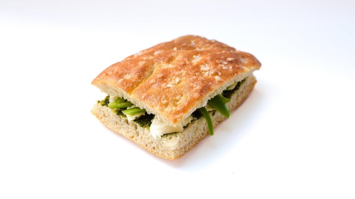 Με πιπεριά κόκκινη, πιπεριά πράσινη, κολοκύθι, μανιτάρι, mozzarella fior di latte και πέστο βασιλικού