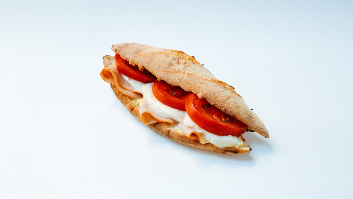 Με καπνιστή γαλοπούλα, mozzarella fior di latte, ντομάτα και μαγιονέζα