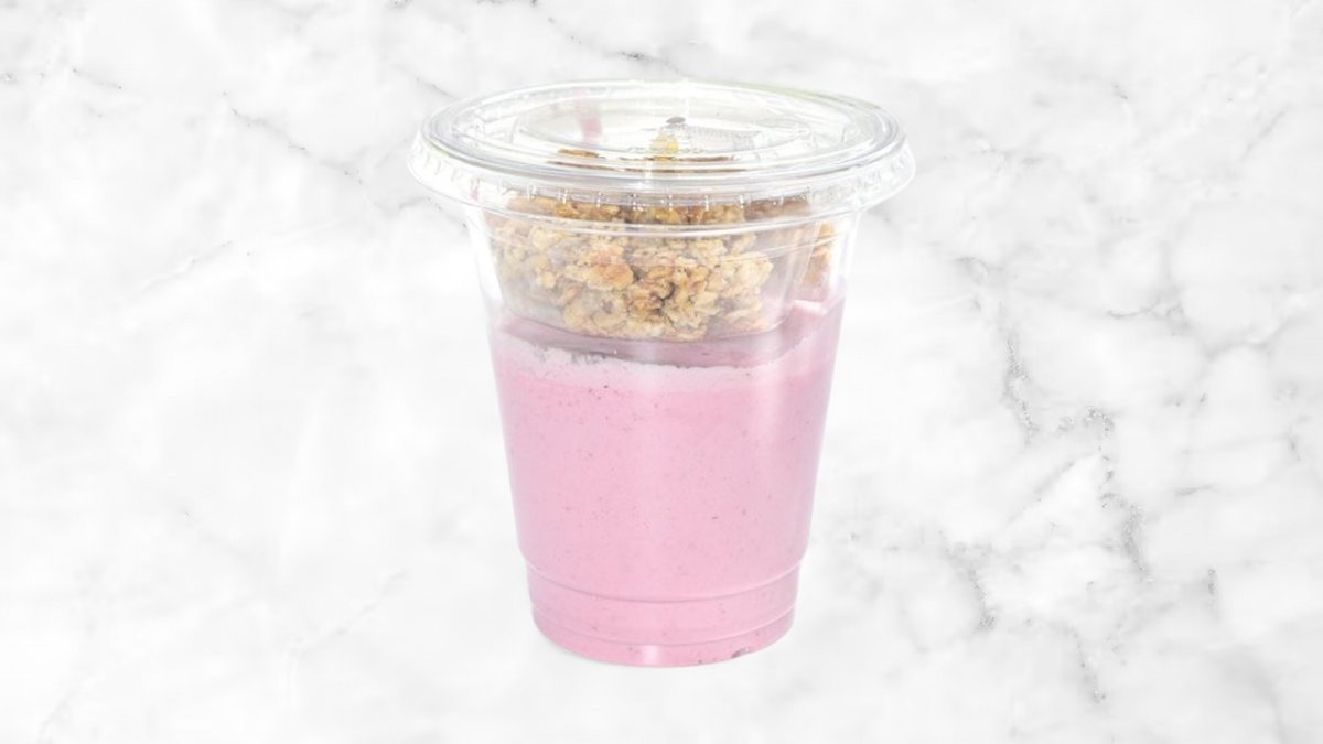 Με γιαούρτι, φυστικοβούτυρο, μέλι, κόκκινα φρούτα του δάσους, γκρανόλα και μπανάνα