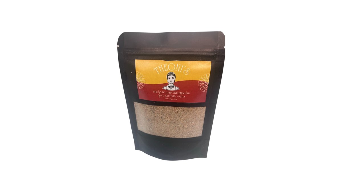Καυτερή μίξη κοτόπουλου Theoni's με εκλεκτά μπαχαρικά που συνδυάζουν αρμονικά την πικάντικη ένταση με τα πλούσια αρώματα των βοτάνων,προσφέροντας μία εκρηκτική γεύση.Χρησιμοποιήστε το σε ψητά, μαγειρευτά,σούπες,σάλτσες κ μαρινάδες.