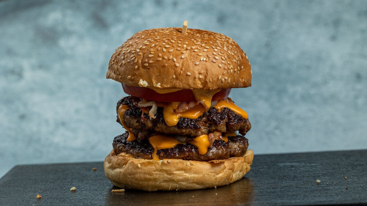 Ψωμάκι της επιλογής σου με 2 χειροποίητα μοσχαρίσια μπιφτέκια 200 g της επιλογής σου, διπλό cheddar, διπλό μπέικον, ντομάτα και hannibal sauce