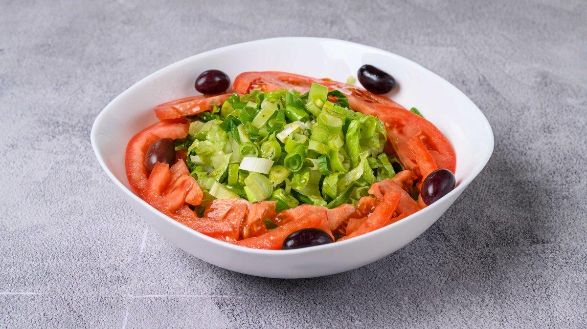 Σαλάτα με μαρούλι, κρεμμύδι φρέσκο και ελιές