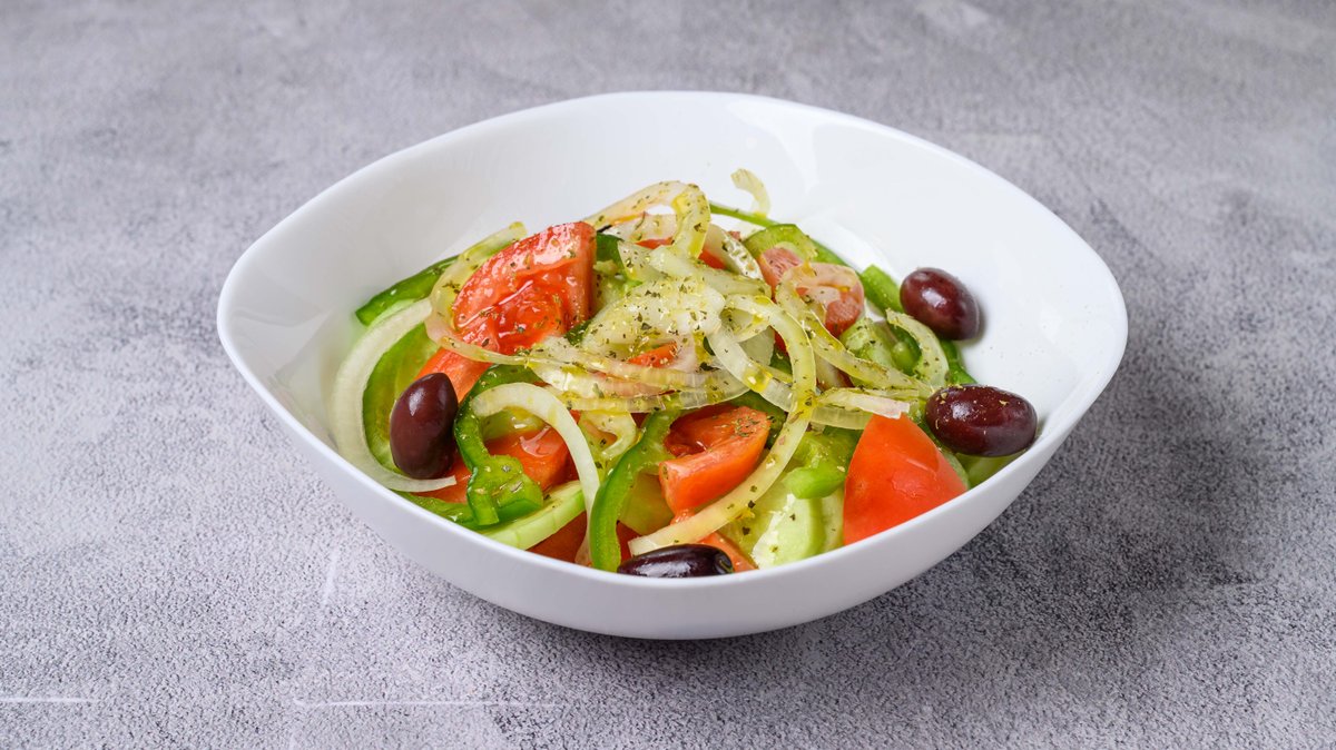 Σαλάτα με ντομάτα, αγγούρι, πιπεριά, κρεμμύδι, ελιές και φέτα
