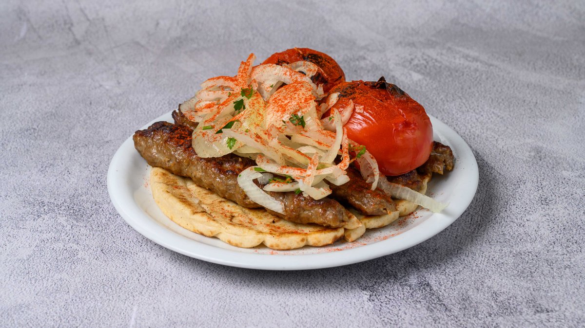 4 Τεμάχια. Συνοδεύεται από ντομάτα ψητή, κρεμμύδι, πάπρικα και πίτα