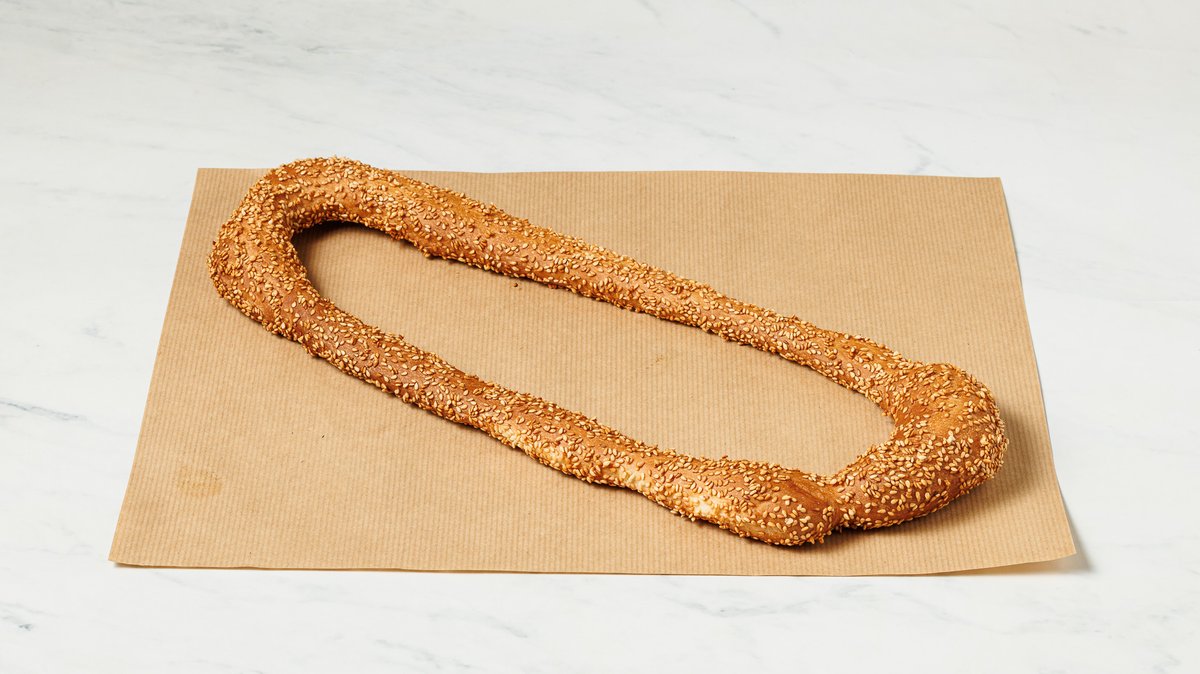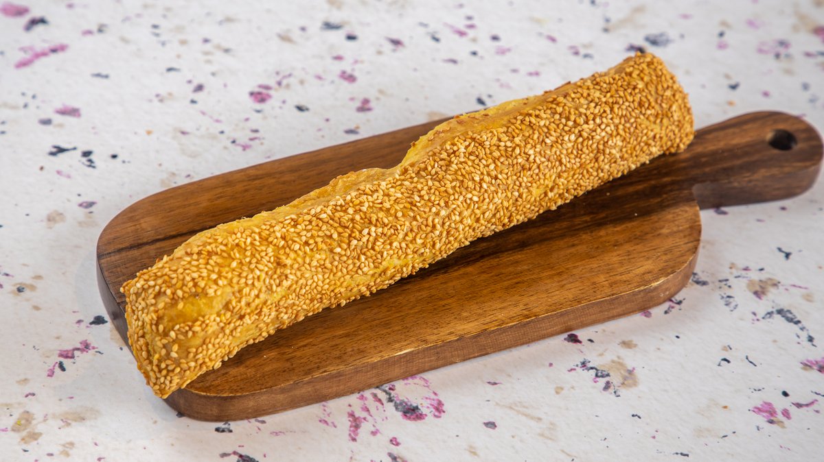70g. 330kcal. Με αλεύρι σίτου, νερό, ζάχαρη, μαγιά, σουσάμι, μέλι, φυτικά έλαια (σογιέλαιο και ηλιέλαιο), αλάτι, αλεύρι αραβοσίτου, μαγειρικό λίπος, άρωμα και προζύμι