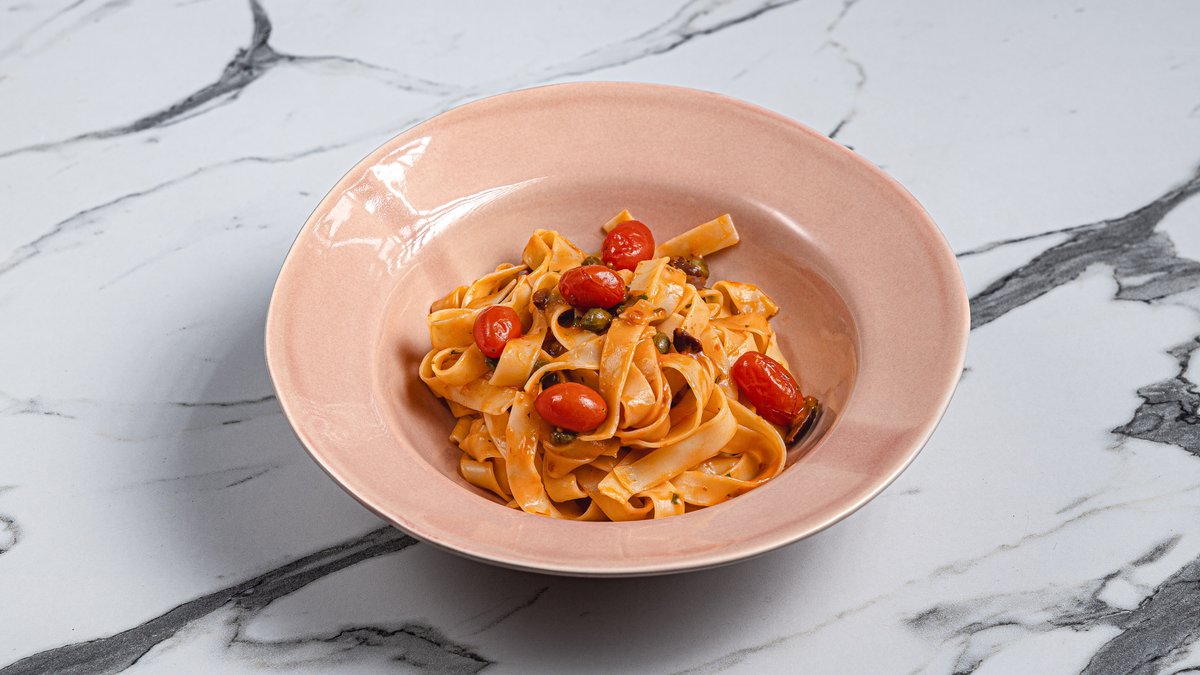 Fettuccine, ντοματίνια, ελιές και φρέσκα μυρωδικά