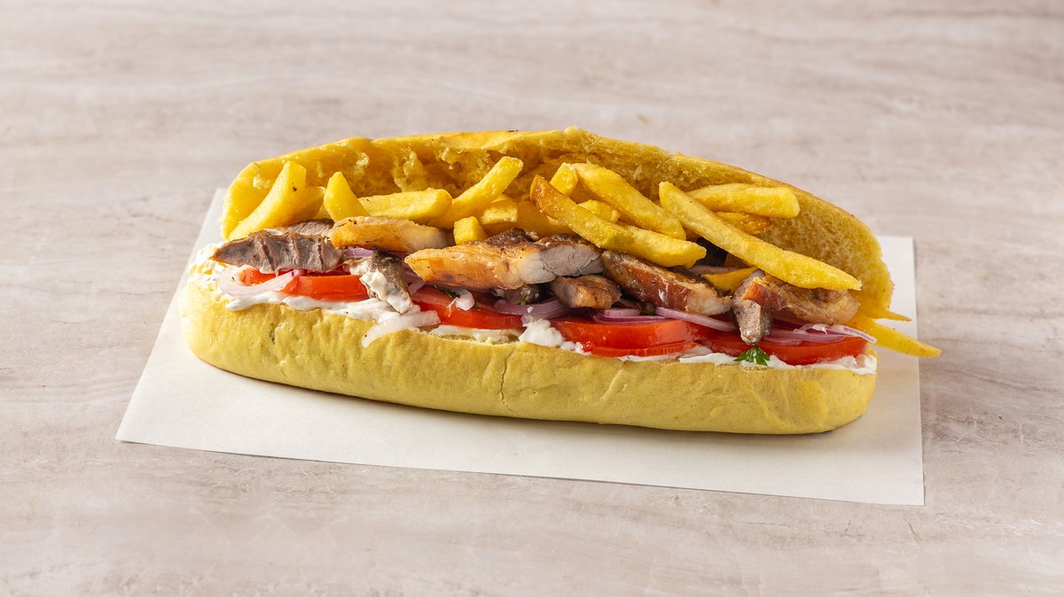 Sandwich καλαμάκι χοιρινό με τα υλικά της επιλογής σου