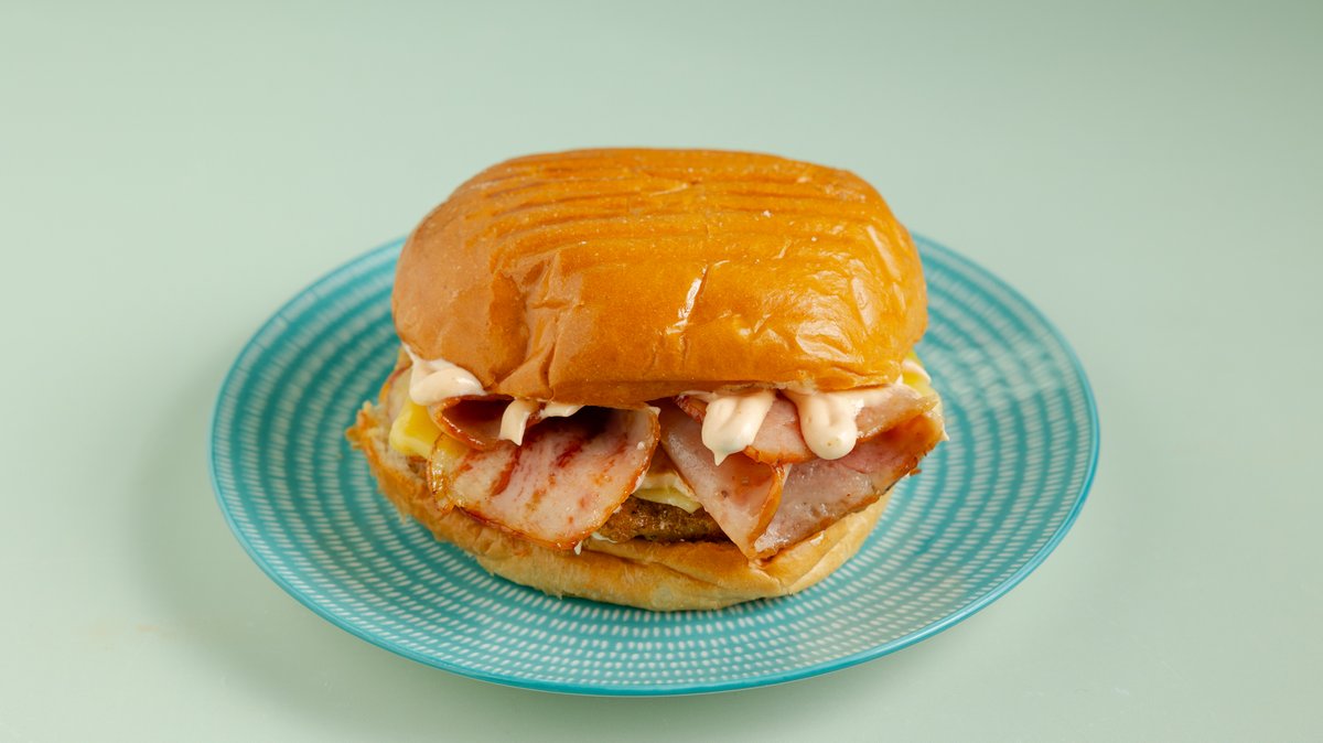 Με μοσχαρίσιο μπιφτέκι, τυρί , smash μπιφτέκι 100% μοσχαρίσιο, αυγό, ντομάτα, BBQ sauce και pink sauce
