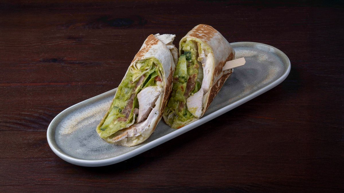 Τορτίγια με ψητό φιλέτο κοτόπουλο, σπιτικό guacamole, λόλα, ντομάτα, αγγούρι & mozzarella