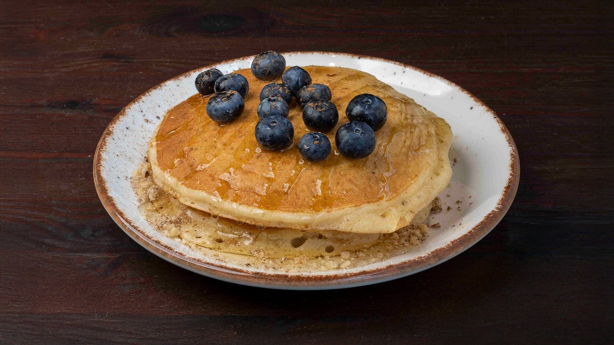 2 pancakes, σιρόπι σφενδάμου, μύρτιλα & καρύδια