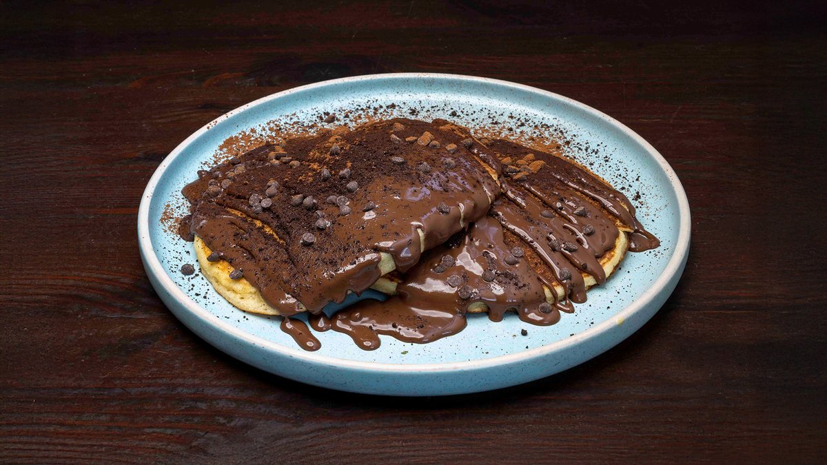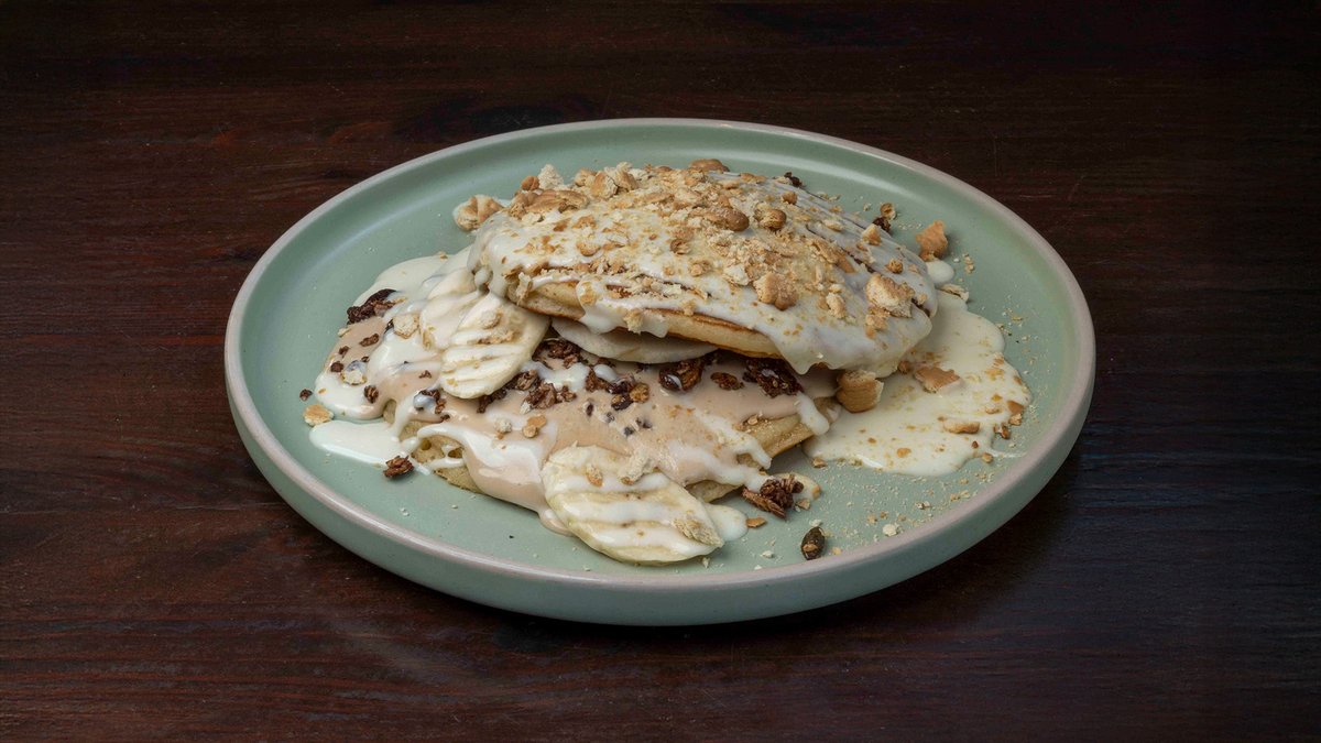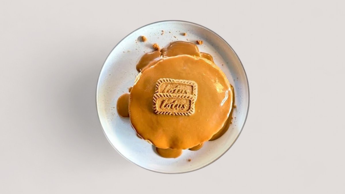 2 Pancakes με χεροποιητη κρέμα biscoff, πραλίνα Lotus biscoff & τριμμένο μπισκότο Lotus biscoff.