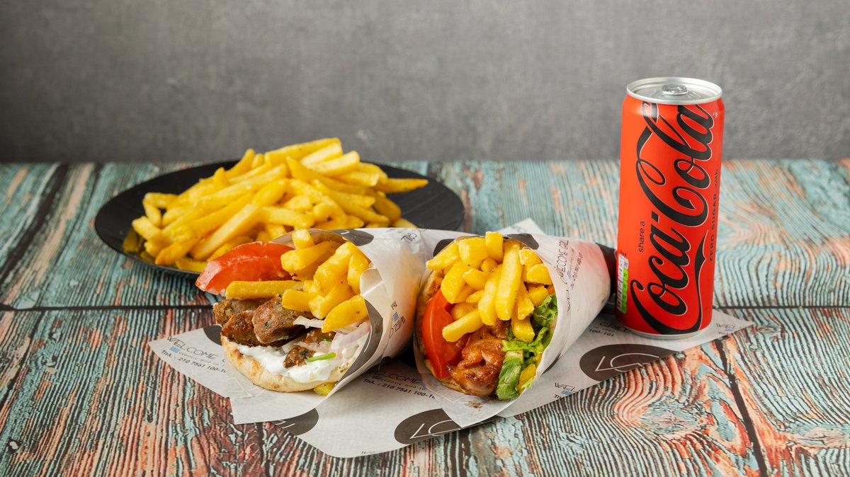 2 Τυλιχτά + 1 Πατάτες Τηγανητές + 1 Αναψυκτικό 0.33 l
