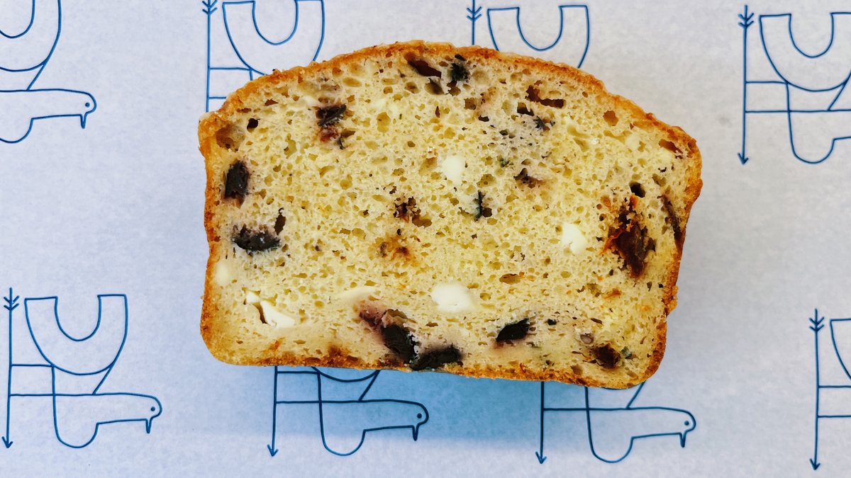Προζυμένιο cake με ελιές, λιαστή ντομάτα, τυριά κα γιαούρτι