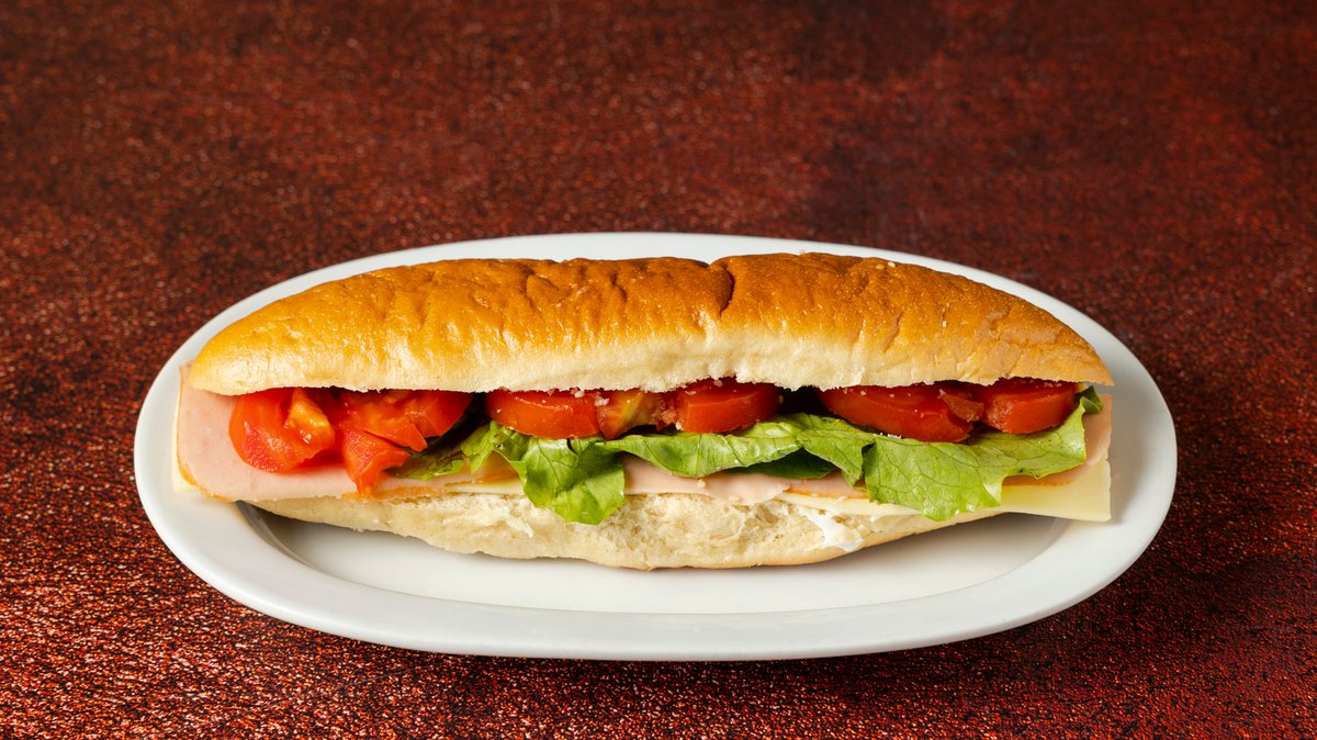 Μπαγκέτα λευκή με γαλοπούλα, gouda, ντομάτα, μαρούλι και μαγιονέζα
