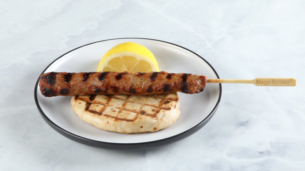 Από 100% μοσχαρίσιο κιμά. Συνοδεύεται από πίτα