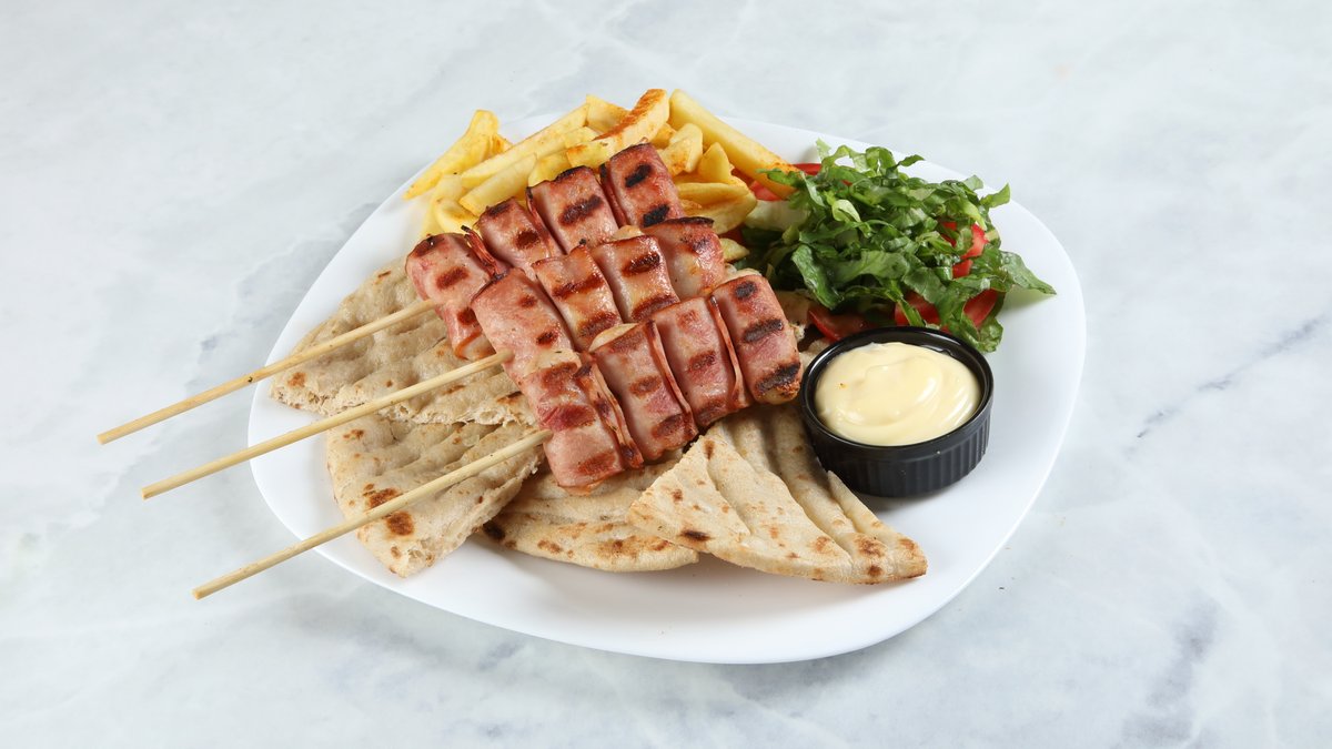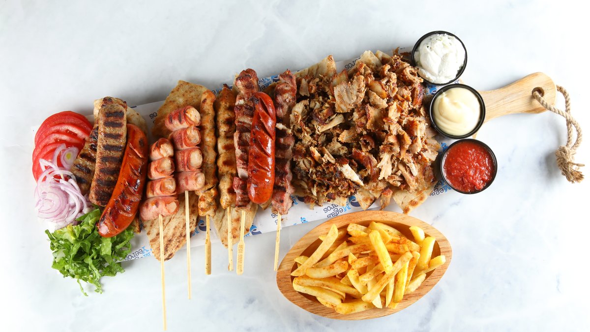 Για 2 άτομα. Με γύρο χοιρινό, γύρο κοτόπουλο, 1 καλαμάκι χοιρινό, 1 καλαμάκι κοτόπουλο, 1 κοτομπέικον, 1 κεμπάπ Philadelphia και 1 λουκάνικο χωριάτικο. Συνοδεύεται από πατάτες τηγανητές, ντομάτα, κρεμμύδι, 2 πίτες και τζατζίκι