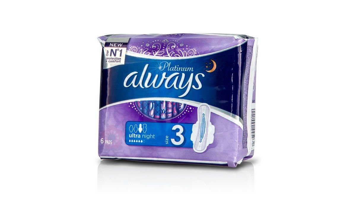 Always Ultra Platinum Ultra Night Size 3 Σερβιέτες με Φτερά 6pcs