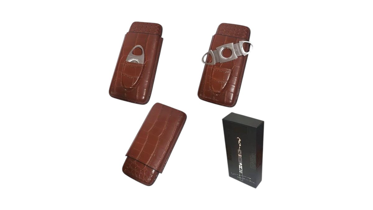 Δερμάτινη Θήκη για 3 Πούρα με Μεταλλικό Πουροκόπτη