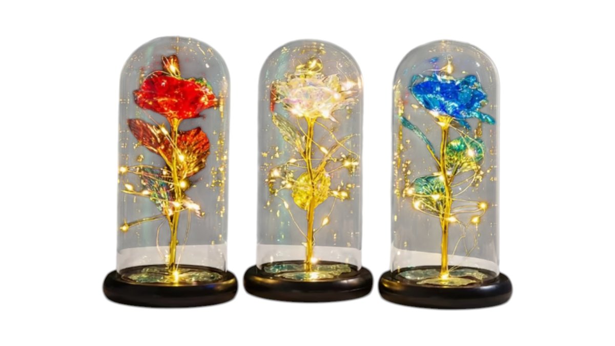 Τριαντάφυλλο σε Γυάλινη Καμπάνα με Φωτάκια 21cm