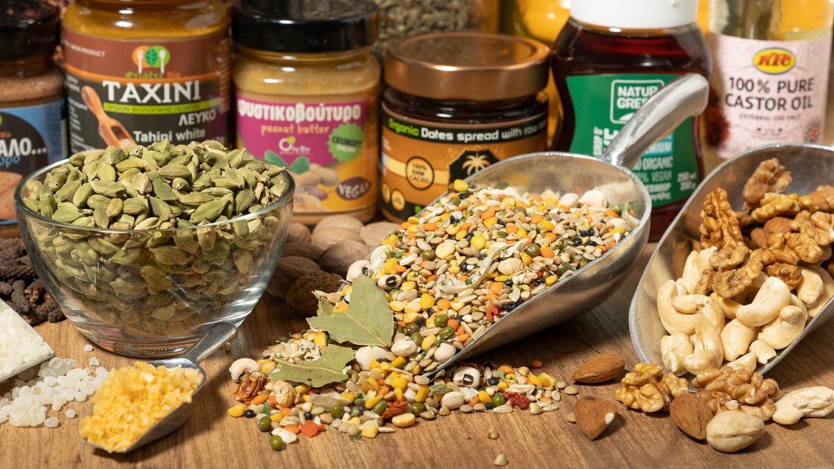 You can find here a variety of spices, herbs, tea, and legumes!