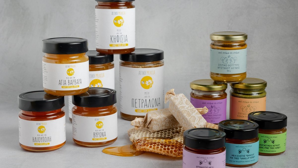 At our store you will find Pine, Fir, Fir Vanilla, Thyme, Oregano, Ligaria, Koumaria, Orange, Heather, Antheon, Forest, Oak and Honeycomb honey with Antheon honey. You will also find pollen, propolis tincture, royal jelly, kernal ointments and the homemade “From Mouth to Mouth” nut butters made from almond, hazelnut, peanut, cashew, pistachio!
