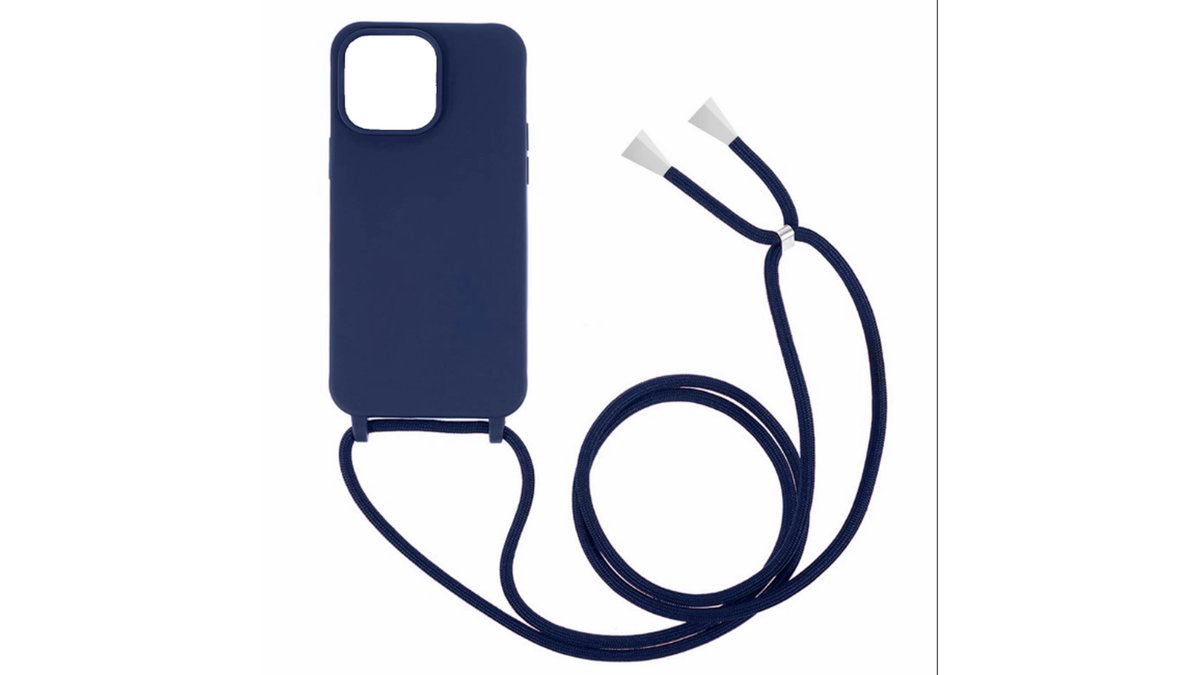 Θήκη σιλικόνης green on με κορδόνι κολιέ για iPhone 15 plus - σκούρο μπλε