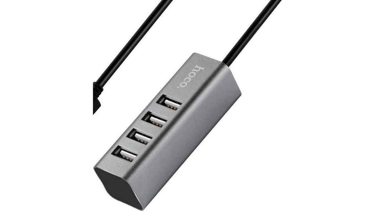 Hub USB 4 Port USB 2.0 HOCO HB1 Για Μεταφορά Δεδομένων & Φόρτισης Ανθρακί