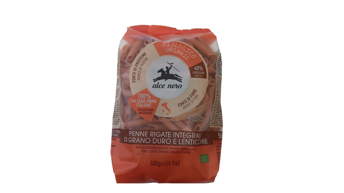 Alce Nero Πέννες Σκληρού Σίτου Ολικής με Κόκκινες Φακές 500 g Bio