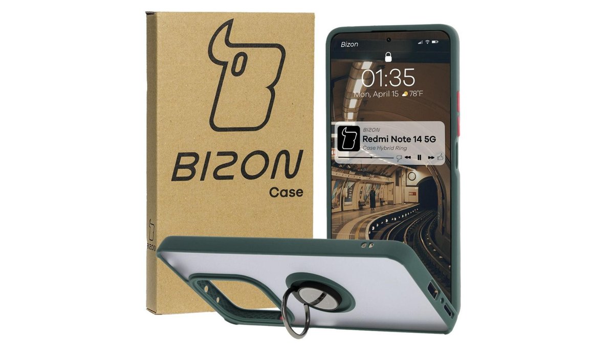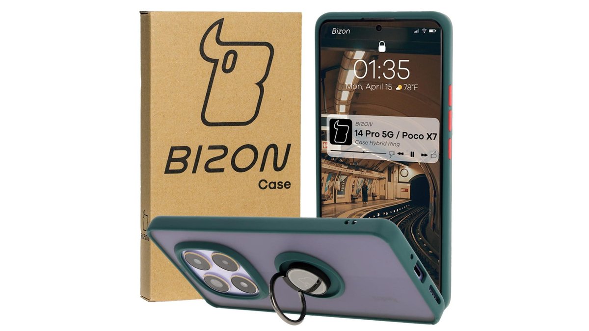 Θήκη Σιλικόνης Bizon Case Hybrid Ring for Xiaomi Redmi Note 14 Pro 5G / Poco X7 smoky with a dark green frame