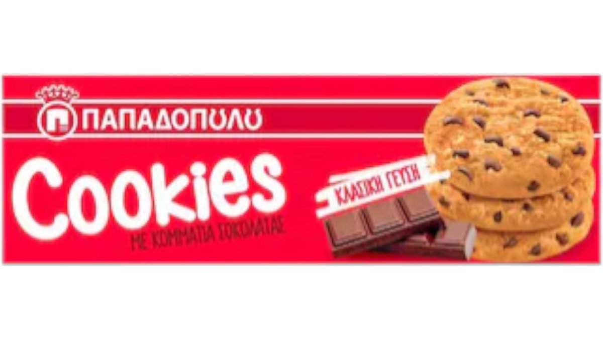 Παπαδοπούλου Classic Cookies Μπισκότα Κομμάτια Σοκολάτας, 180 g