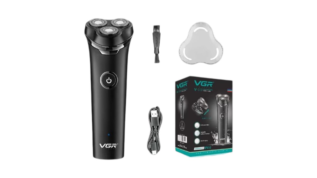 Ηλεκτρική Ξυριστική Μηχανή Vgr V-319 Ipx6 Φόρτιση Usb Λειτουργεί Υγρό Ή Στεγνό Περιβάλλον Ασύρματο 3 Περιστρεφόμενες Λεπίδες Μαύρο