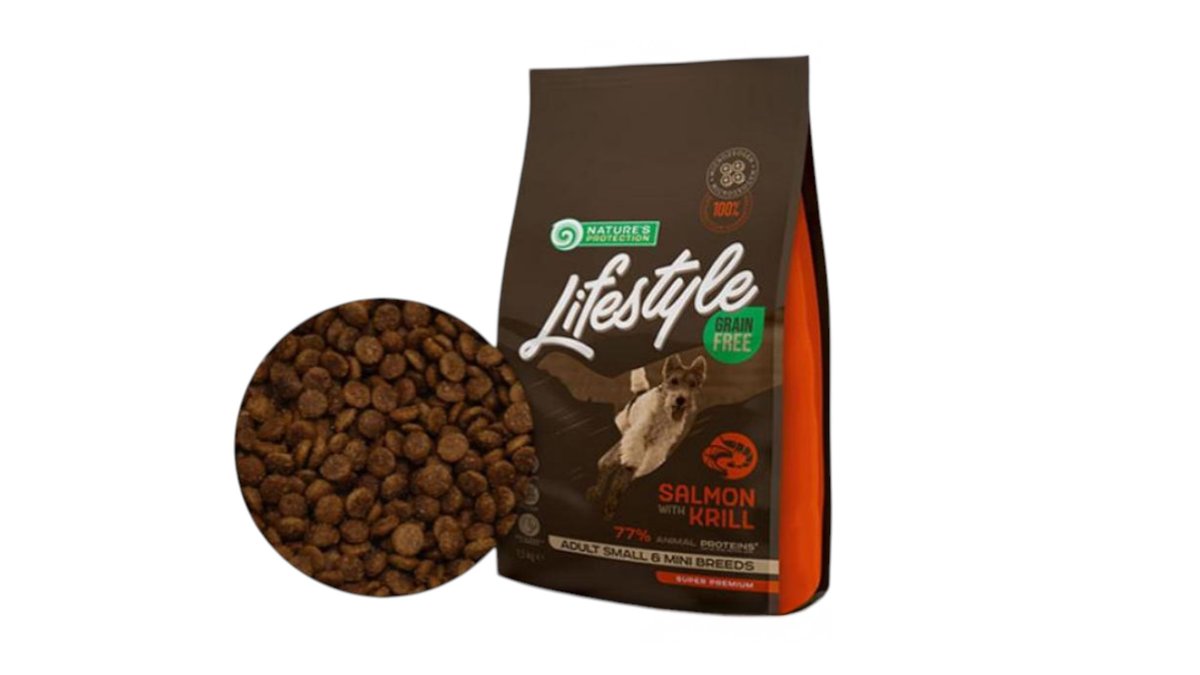 €14.34Nature's Protection-Lifestyle Grain Free ξηρή τροφή με Σολομό και Κριλ για μικρόσωμες και μεσαίες φυλές 1,5kg