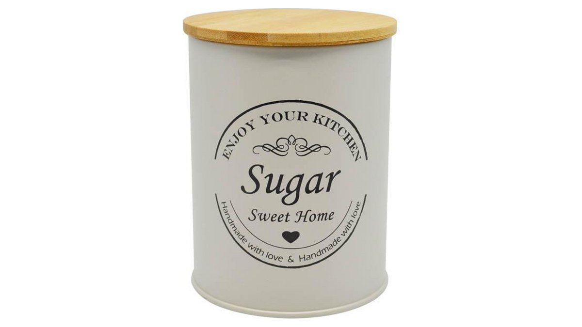 Βάζο μεταλλικό μπεζ Sugar με μπαμπού καπάκι 10x10x13,5εκ.