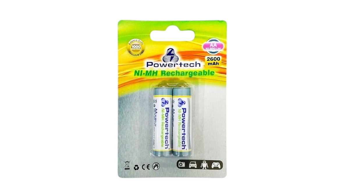 POWERTECH επαναφορτιζόμενες μπαταρίες NI-MH PT-1404, AA, 2600mah, 1.2V, 2τμχ