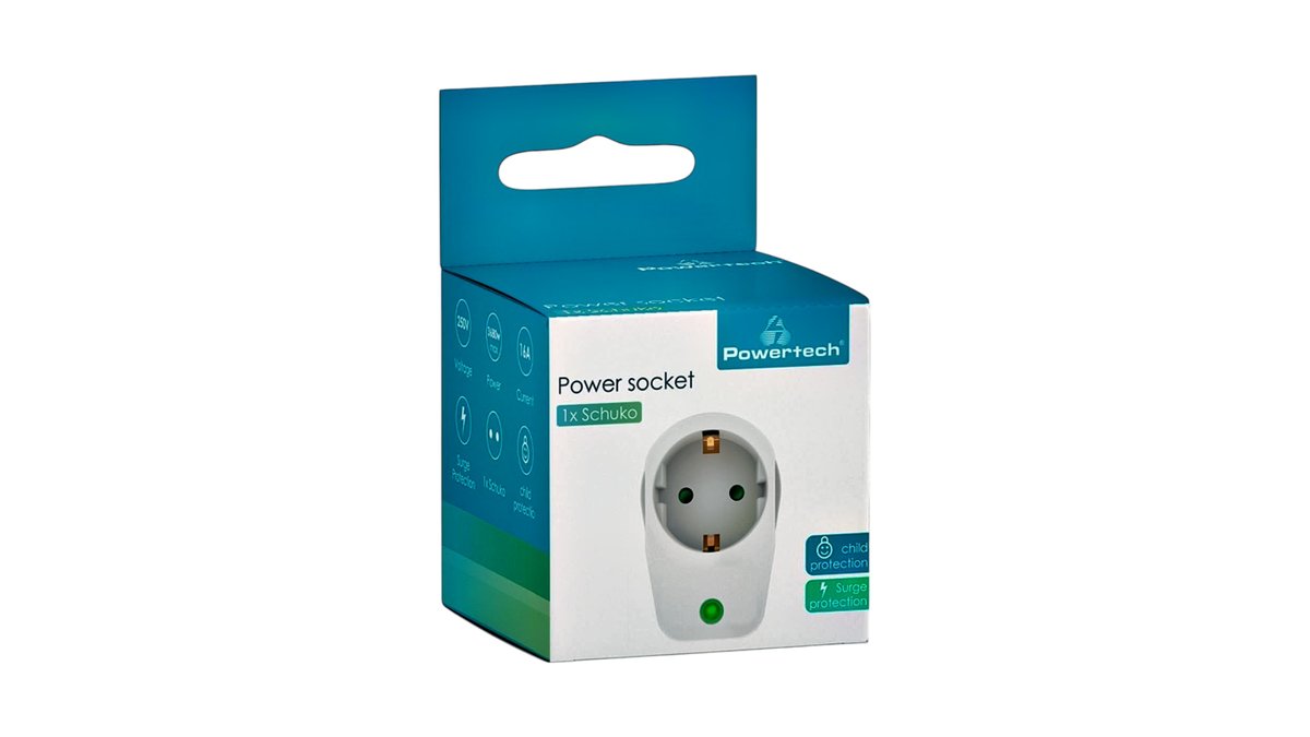 POWERTECH Προστασία υπέρτασης - ρεύματος - PT-996, 1 θέση schuko, 16A, 3680W, λευκός