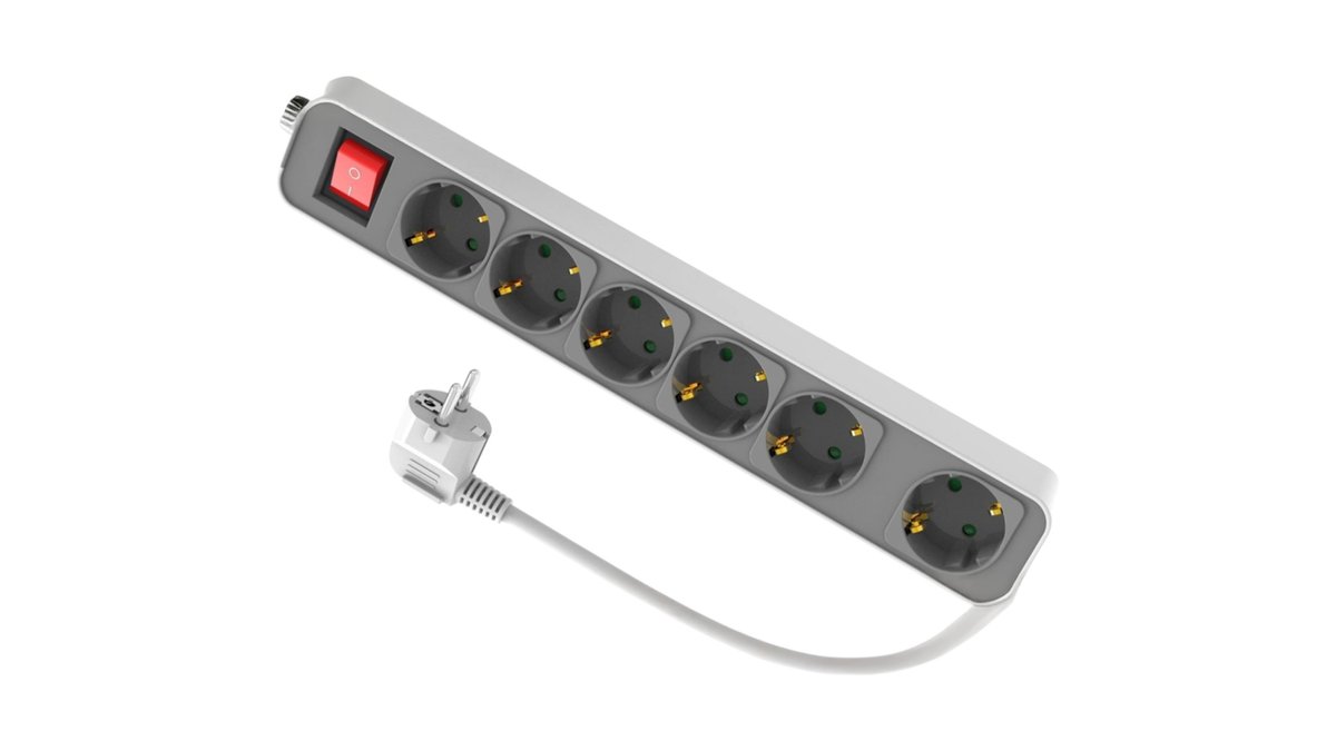 POWERTECH πολύπριζο ασφαλείας PT-1058, 6x schuko, 16A, 1.4m, λευκό