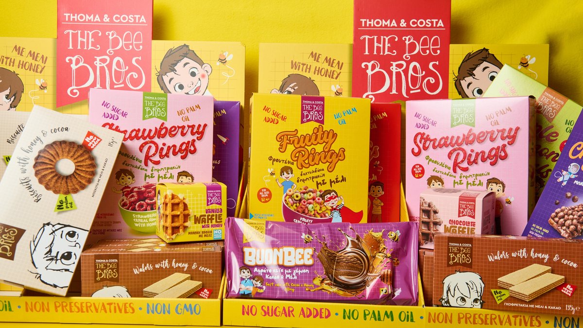 In our collection you will find breakfast cereals, crispy rings, chocolate balls, cereal bars, wafers, waffles, cookies and fluffy cakes, all with honey and carefully selected raw igredients! At the same time, we have honey spreads with cocoa and fruit, ideal for breakfast or a snack!