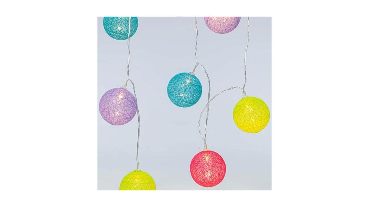 10 Λαμπάκια Led σε Σειρά με Διακοσμητικές Πολύχρωμες Πλεκτές Υφασμάτινες Μπάλες, 1.35 M, Διάφανο Καλώδιο, Σταθερή, Ip44, Θερμό Λευκό Warm White