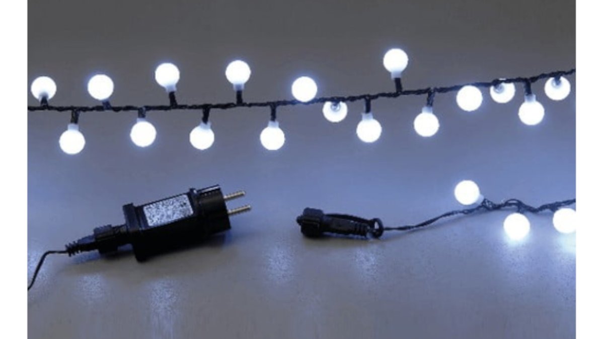 100 Λαμπάκια Led σε Σειρά με Διακοσμητικές Μπάλες, 2.5 M, Πράσινο Καλώδιο, Σταθερή, με Επέκταση, Ip44, Ψυχρό Λευκό