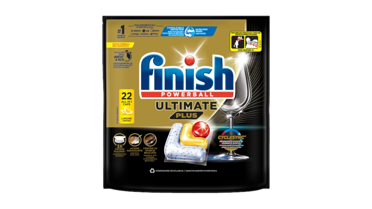 Finish Απορρυπαντικό Πλυντηρίου Πιάτων Ultimate All in 1 Λεμόνι 25 Κάψουλες