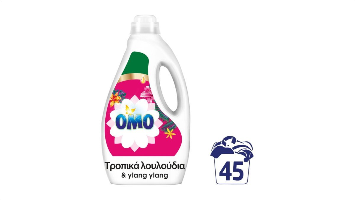 OMO Υγρό Απορρυπαντικό Πλυντηρίου Ρούχων Τροπικά Λουλούδια & Ylang Ylang 45 Μεζ.