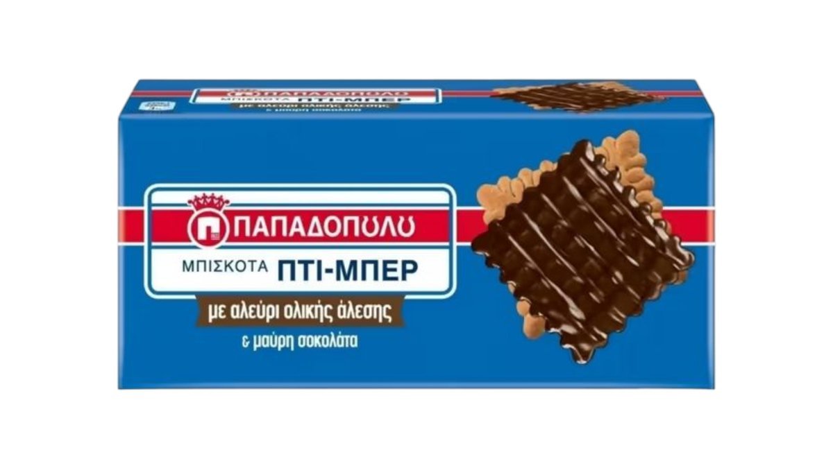 Παπαδοπούλου Μπισκότα Πτι Μπερ Ολικής Άλεσης & Επικάλυψη Μαύρης Σοκολάτας, 200 g