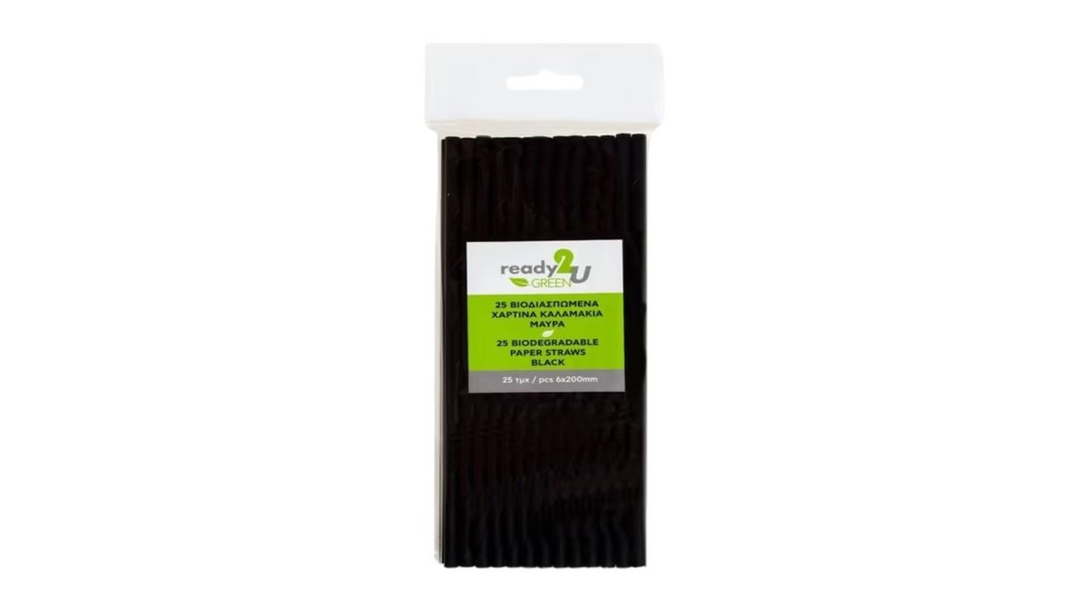 Ready2u Χάρτινα Καλαμάκια Μαύρα 25 Τεμάχια