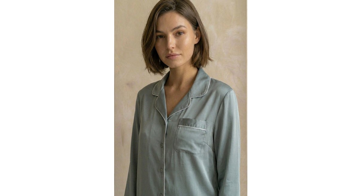 €44.90Μεταξένιας λεπτής υφής σατέν πιτζάμα 'Ιόλη' Dusty Blue-Grey Nightfall - Γκρί
