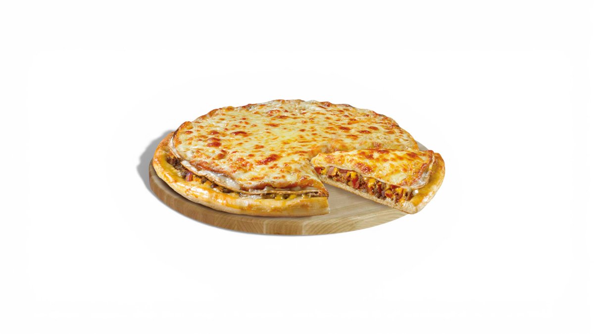 Με σάλτσα ντομάτας, τυρί gouda, μανιτάρια, ζαμπόν, μοτσαρέλα, μπέικον, σουτζούκι, καπνιστό χοιρινό, πιπεριά και πεπερόνι